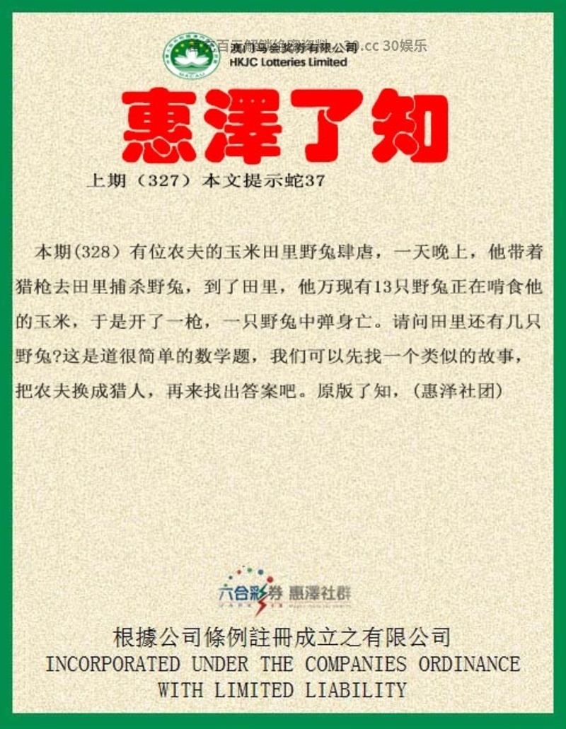 | [惠泽了知] 328期:有位农夫的玉米田里野兔肆虐,一天晚上,他带着猎枪去田里捕杀野兔,解野肖鼠虎兔龙蛇猴。到了田里,他万现有13只野兔正在啃食他的玉米,于是开了一枪,一只野兔中弹身亡。解凶丑鼠牛虎猴狗猪。请问田里还有几只野兔?这是道很简单的数学题,我们可以先找一个类似的故事,把农夫换成猎人,再来找出答案吧。 [惠泽九肖]:兔鼠虎龙蛇猴狗猪马 [惠泽六肖]:兔鼠虎龙蛇猴 [惠泽三肖]:兔鼠虎 [惠泽一肖]:兔 [惠泽平肖]:兔兔兔 [惠泽平尾]:5555尾 |